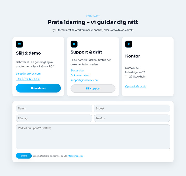Vi utvecklade en ny hemsida för Norrvex Consulting som presenterar deras tjänster på ett tydligt och modernt sätt. Sidan kombinerar professionell design med enkel navigering för att stärka varumärket och nå nya kunder.